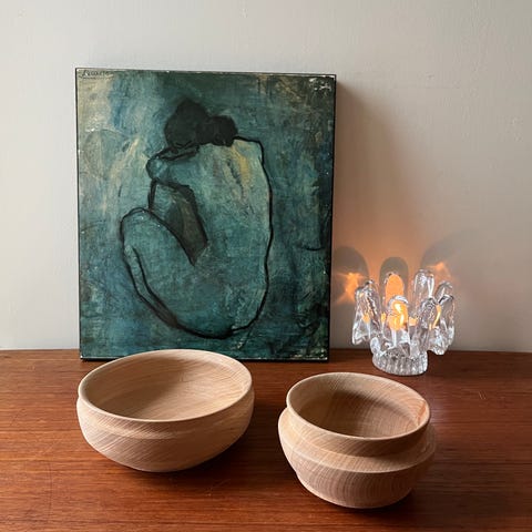 4 flotte treskåler i forskjellige størrelser håndlagte