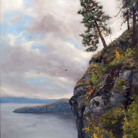 Bildet er opprinnelig malt ute på lokasjon i Vestfold, og siden malt i større versjon i studio. Henger utstilt i Quartum Galleri i Tønsberg fram til 8.mars og kan hentes og betales der.