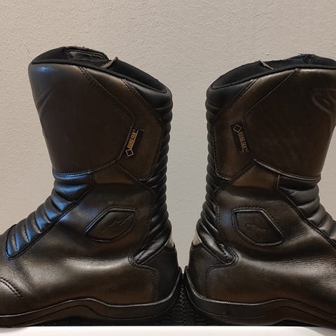 MC- støvler i skinn størrelse 44, brukt 3 ganger. DEttye er meget gode støvler, ny pris var 3300, selges nå for 1100 + frakt hvis jeg må sende støvlene.
