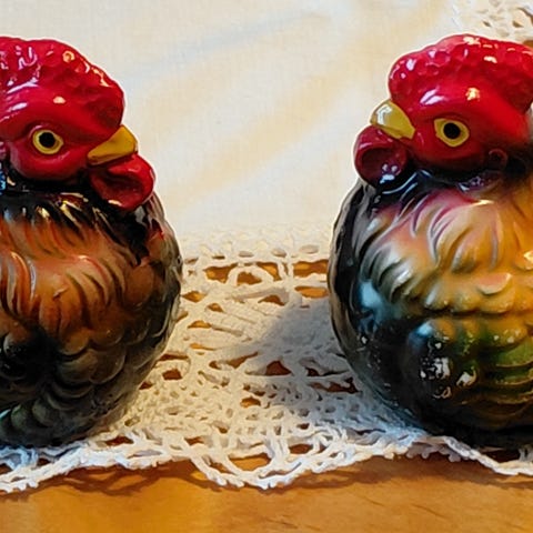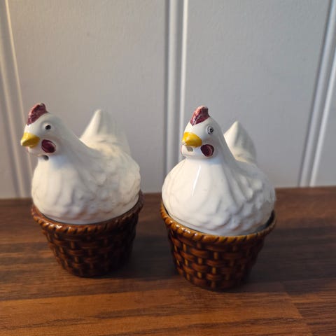 Vintage høner til salt, pepper og sukker
