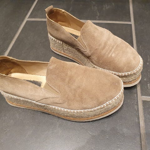 Kjempefine, myke og behagelige sko fra Bianco i semsket beige stoff. Str. 40. Ubrukt.