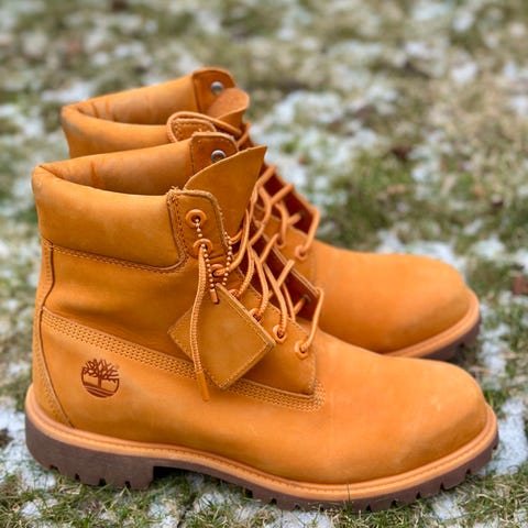 Selger et par Timberland 6-Inch Basic herresko – en tidløs klassiker som kombinerer robust kvalitet med ikonisk design.