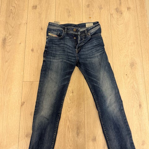 Replay jeans i denim for herre. Buksen har blå vask med slitte detaljer og er i størrelse W28 og L 32. Klassisk 5-lommersmodell med glidelås og knapp i front, beltehemper i livet og skinnpatch bak i linningen. Materiale i denim gir et robust og slitesterkt plagg egnet til hverdagsbruk.