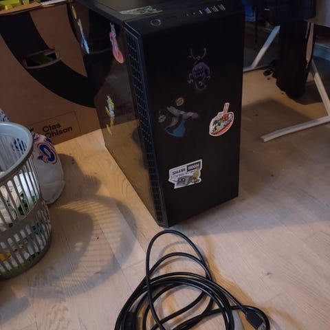 Det er 16gb RAM og en 1,03Gb Harddisk. Masse usb stikkontakter bak en fremme og en usb-c inngang foran. Dvd brenner. Maskinen er veldig godt brukt den er akkurat som ny ingen riper og jeg ønsker bud som begynner på 6000. Da får du med pc bord også med på kjøpet. Den er i daglig bruk så om du er interessert gi beskjed 1dag før du kommer og henter den slik jeg får reinstallere den. Windows 10 med gratis oppgradering til Windows 11 Pro.