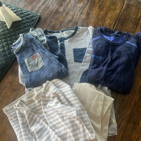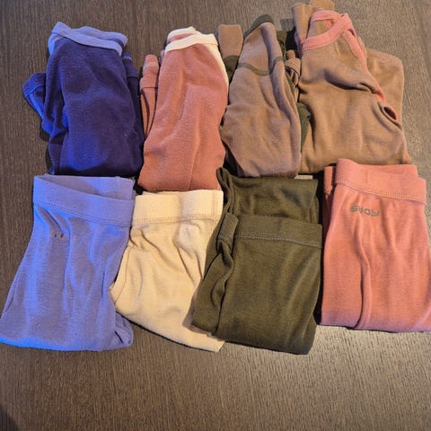 Strøkne trøyer og stillongs. Noe tegn til nupper. Ellers mye bruk igjen.