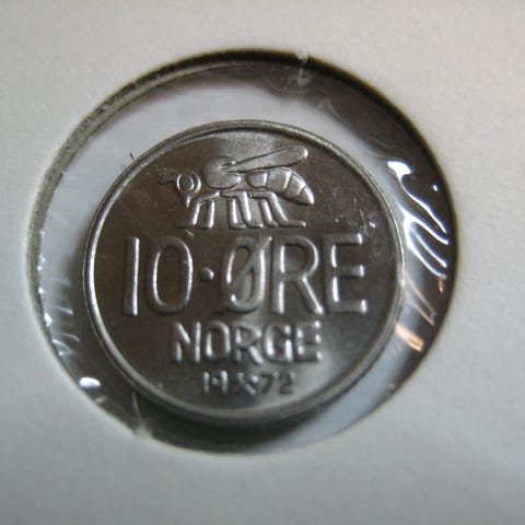 10 øre 1972 kv 0 selges kr 20.-+porto