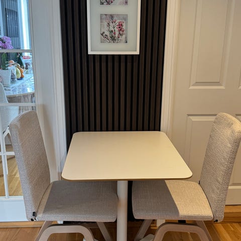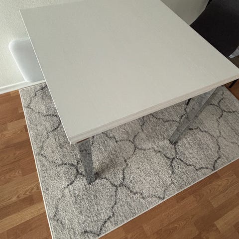 Pent brukt IKEA spisebord. Nypris var 695 kr. Det er et lite misfarger område (se siste bilde) som kan ses ved enkelte vinkler, men ikke sjenerende synes jeg. Kan hentes i Ski sentrum.