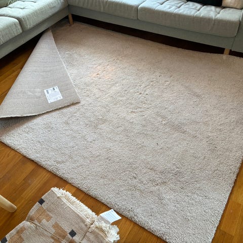 Stoense teppe fra Ikea i str 133 x 195. Som nytt, kun ligget på under bildetaking og fram til visning.