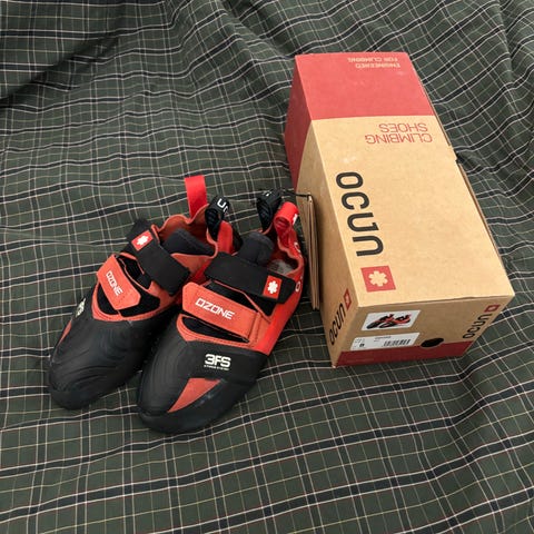 Selger et par ubrukte Ocun Ozone HV klatresko. Merkelappene henger fortsatt på, og de leveres i original eske.