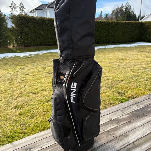 Selger en Ping Hoofer bærebag i svart. Baggen har delt topp med flere rom for køller og integrert bæresystem.