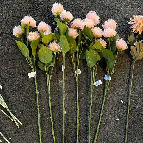 Sto bukett med kunstige blomster kjøpt på Barbu Interiør for 1000,- Ståltråd i stilk som kan tilpasses ulike lengder.