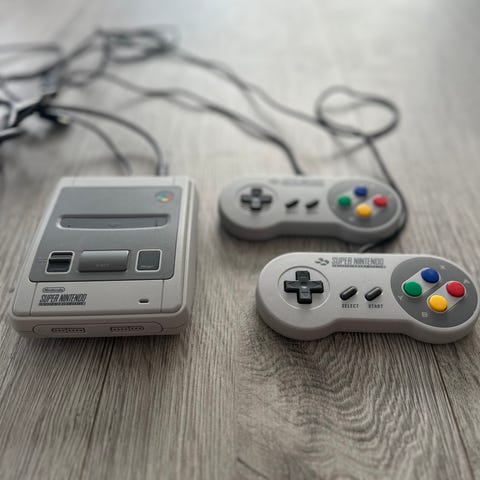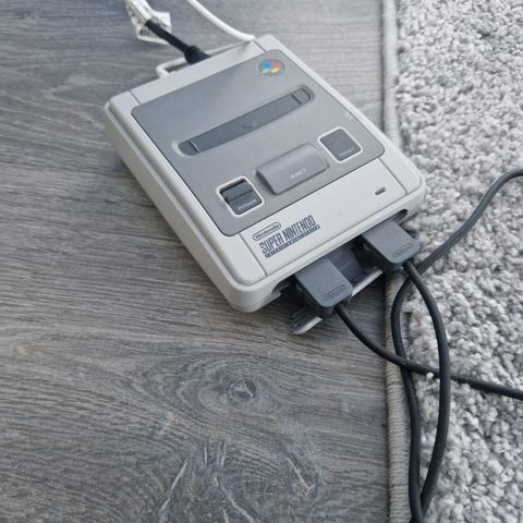 Super Nintendo mini med 20 innebygd Super Nintendo spill: Inkluderer Super Mario World, Mario Kart, Contra, Street fighter, Zelda. Fungerer som ny og uten betydelige skader eller slitasje på utstyr.
