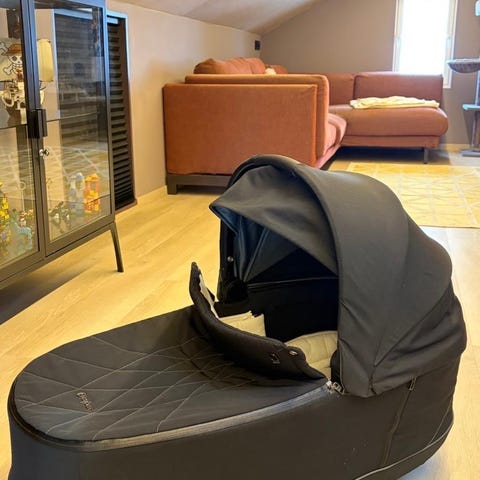 Cybex Priam Platinum liggedel til barnevogn i svart tekstil. Som ny