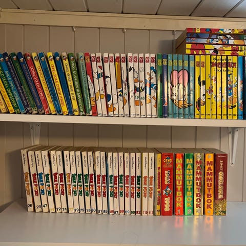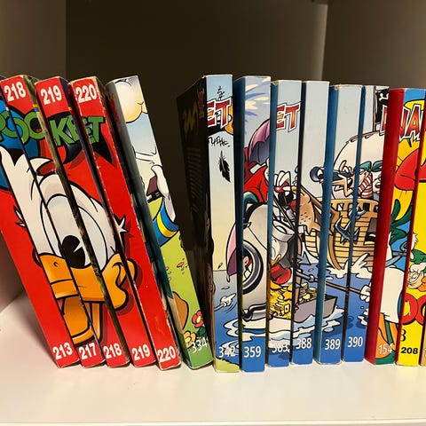 Walt Disney Donald Pocket tegneserieblader samling. Det er også mindre vanlige pocket bøker som "skrue pocket, b-gjengen pocket og mikke mus pocket".