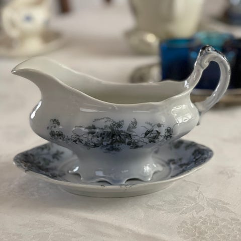 Antikt sausenebb fra Egersund Fayancefabrik blå blomst.
