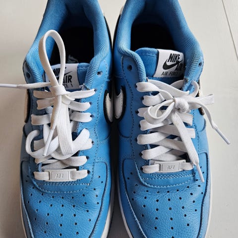 Helt nye air force hvite Nike sko selges med kvittering. Blitt for små for min sønn siden jeg kjøpte de til jul. Selges derfor nå. Kvittering fra zalando.