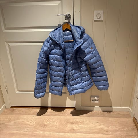 Va Vite jakke for dame i størrelse S. Jakken er brun og laget i polyester med dunfyll. Lukkes med glidelås foran. Egnet som lett ytterjakke i overgangssesonger eller som et ekstra lag under en ytterjakke på kaldere dager. Kun brukt få ganger, og fremstår som ny.