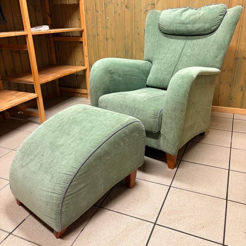 2 stk lenestoler med puffer selges komplett som et sett. Hentes i Skien
