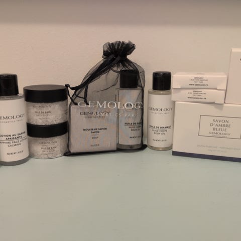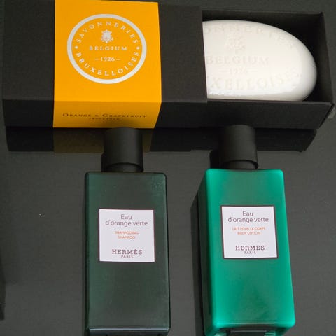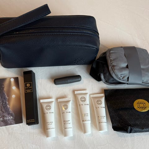 Alle produktene er helt nye og ubrukte – toalettmappen er også ubrukt.