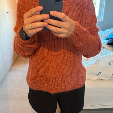 Hjemmestrikket dame genser . 3/4 lange ermer. Strikket i drops air.