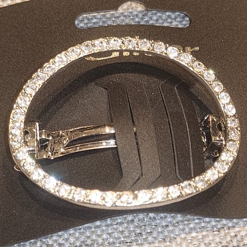 Farge: Sølvfarget metall med klare/glitrende krystaller.