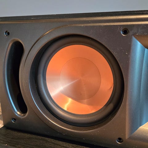 Høyttaler 2: Defekt/spiller ikke (mulig feil i delefilter eller koblinger). Fin som delelager for kabinett og basselementer.