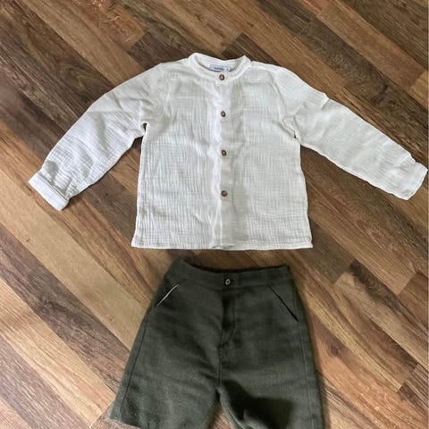 Nydelig sett fra Newbie i str 80 med skjorte, shorts og solhatt.