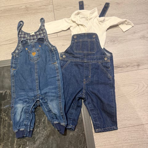 Selebuksen har brede seler, knappelukking foran og vid passform i beina. Den er laget i lett bomullsstoff som ligner denim. Oppleves litt liten i str og kan være 104-110