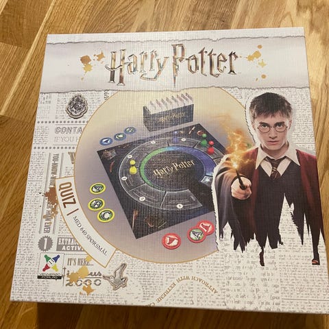 Harry Potter Quiz brettspill. Spillet inneholder spillebrett, spørrekort, spillebrikker og spilleregler. Spørsmålene er basert på Harry Potter-universet, og spillet passer for flere spillere som ønsker å teste kunnskap om bøkene og filmene. Egnet som familiespill eller til spillkveld med venner.