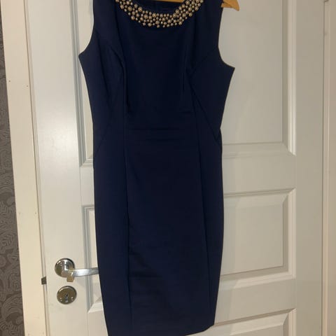 Har eit bruksmerke på halskanten etter eit smykke. Kjolen ser ellers ubrukt ut.