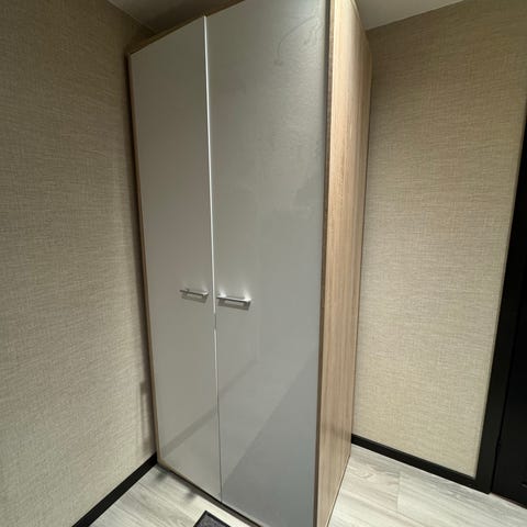 Er limt noen plasser i tillegg til skruer. Fungerer helt fint. Må demonteres og bæres ut av den som henter. Må hentes innen onsdag 25.02. Det er heis i blokka.