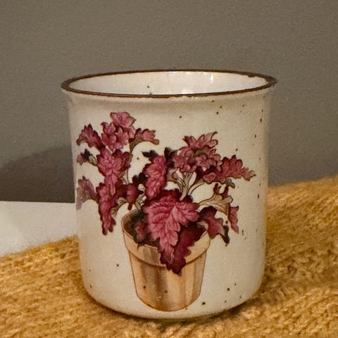 Hvit blomsterpotte i porselen med englefigurer