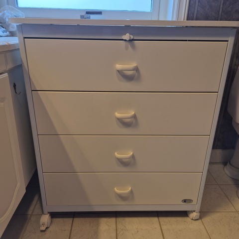 Ingen skader på skuffer etc, men bruksmerker på selve kommoden. Kan legges flatt på toppen for stellematte etc. Brukt til to barn, fra røykfritt og dyrefritt hjem.