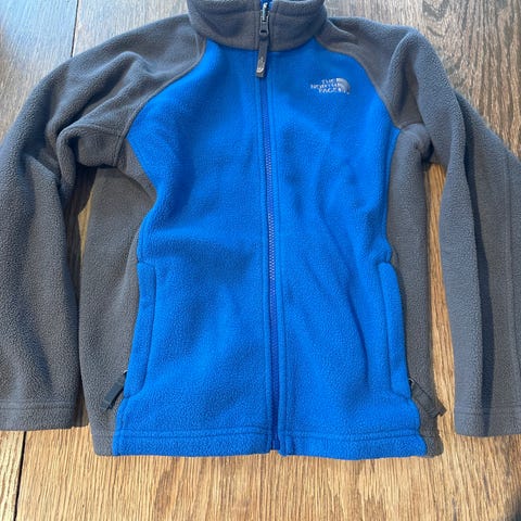 The North Face dunjakke for gutt i størrelse 128/134. Jakken er fylt med dun og har ytterstoff i blått med svarte partier øverst. Modellen har høy krage, glidelås i front og to sidelommer med glidelås. Kan strammes i livet om ønskelig. (Via lommene). Passer som ytterjakke til hverdagsbruk og utendørsaktiviteter i kjøligere vær.