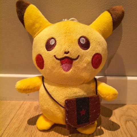 Pokémon Pikachu og en påskebjørn kjøpt på Tiger i fjor.