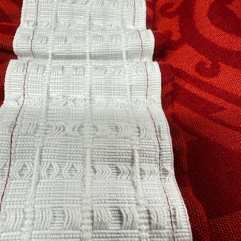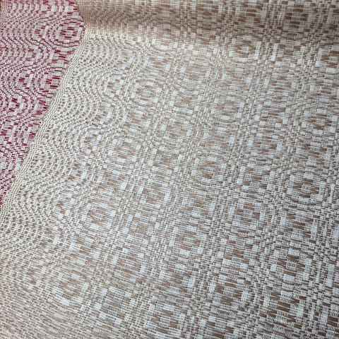 Løperen vevet i hel lin. Teknikk er halvdreil men innslag av rød lin på hvit renning.