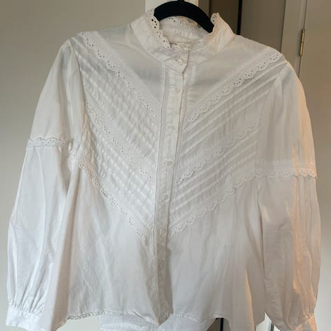 Nydelig skjorte med hullmønster og fine detaljer. Helt ny med lappen på. Str. L, men kan passe både L og XL. 100% bomull.