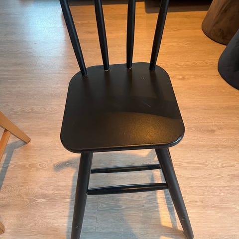 IKEA barnestol i hvit farge. Stolen har ryggstøtte og armlener, samt med meier som gjør den til en gyngestol for barn. Egnet som sittemøbel på barnerom eller i stue. Laget for barn, med lav sittehøyde tilpasset mindre barn.