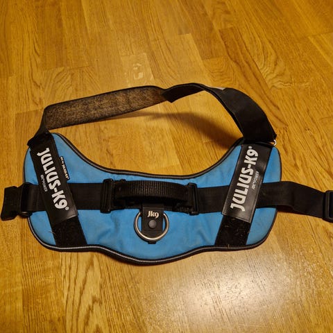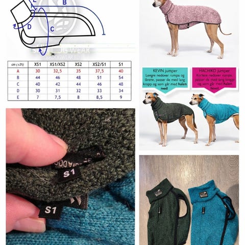 Inneholder blant annet ubrukt Baltic redningsvest for hund i svart og oransje, 2 svarte hundeseler med polstring og justerbare stropper, Muddy Mutts regndress for hund i mørk farge, Hurtta regndress, samt to metallskåler. Utstyret er til stor hund str XXL.