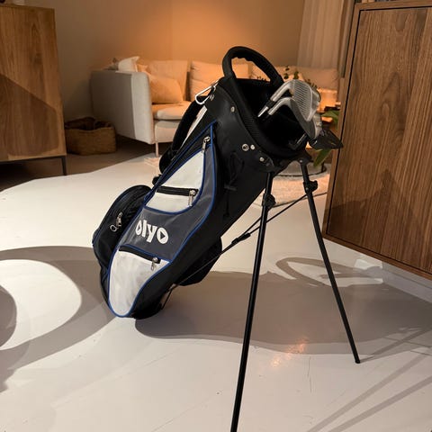 Golfbagen har integrert stativ med flere rom for organisering av køllene, samt sidelommer for oppbevaring av tilbehør. Egnet for bruk på golfbane og trening.