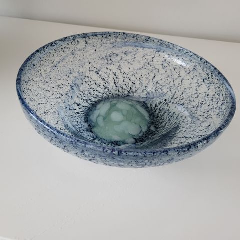 Jeg rydder i forbindelse med flytting, og selger to nydelige skåler fra Hadeland Glassverk i blå- og grønntoner med gulldekor. Selges samlet.