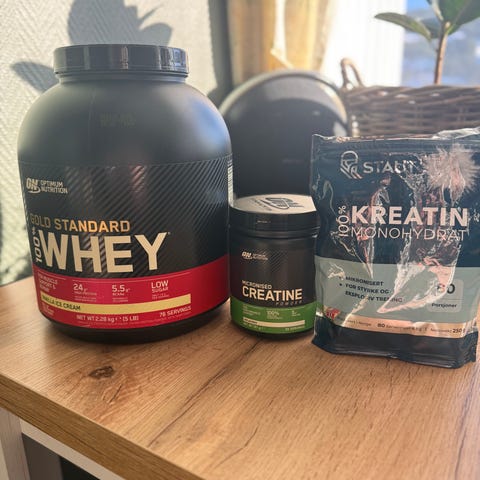 Rocky Road proteinpulver fra Optimum Nutrition selges da den ikke falt i smak av noen av oss. Er bare tatt 2-3 skjeer fra den, så er så og si full.