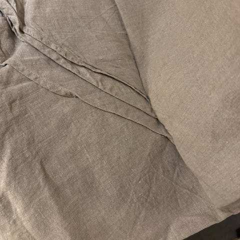 Pent brukt stretch laken i beige, str 120 x 200 cm.