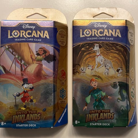 Komplett sett med begge Disney Lorcana Rise of the Floodborn starterdekkene. Nye og uåpnet.
