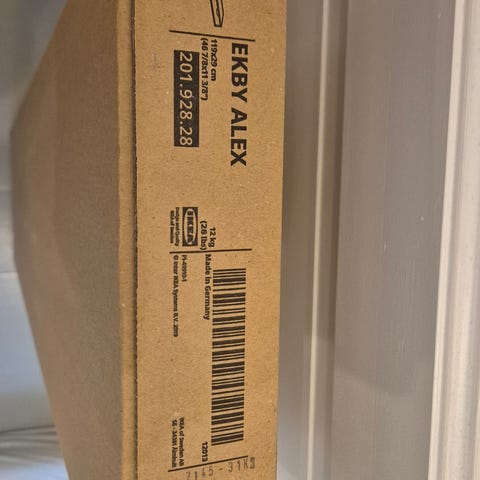 Selger to Ekby Alex hyller. Begge hyllene har skuffer, selges med fester som vist på bildet. Noen malingflekker forekommer, men de kan enkelt fjernes. Selges helst samlet.