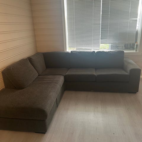 Selger vår fine hjørnesofa da vi har kjøpt ny. Sofaen er god å sitte i, trekkene kan tas av og vaskes. Kan deles i tre deler ved flytting. Kom gjerne med bud!