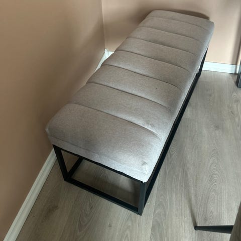 Den har vært brukt på barnerom. For interesserte kan jeg legge ved en fotskammel i samme farge.