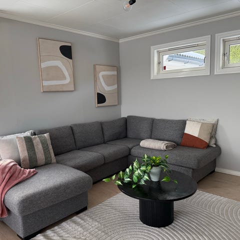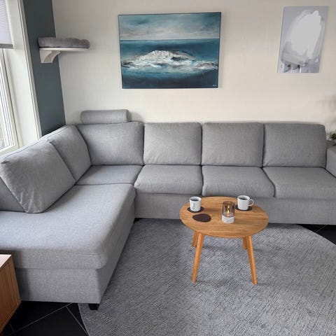 Selger sofa for besteforeldrene mine.