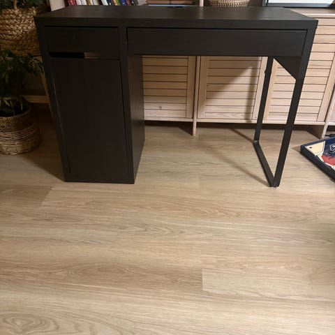 Hvitmalt bord med skuff. Kan brukes til skrivebord, entrébord, nattbord osv. Noen få mindre merker, men alt i alt ser bordet fint ut.