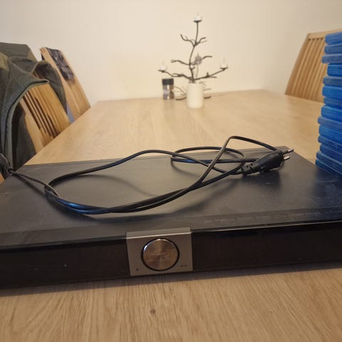 Oppdaget plutselig at jeg hadde en dvd spiller fra gamle dager. Den er ikke mye brukt og jeg har ikke DVD plater. Husker ikke hvor gammel den er.